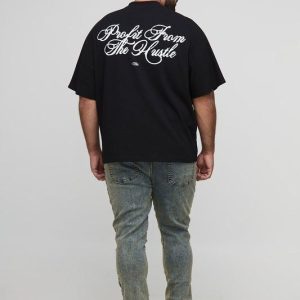 Plus Oversized Boxy Heavyweight Skull Large Scale Print T-Shirt
