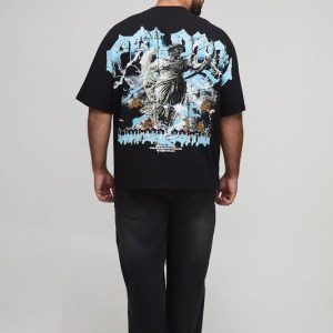 Tall Oversized Boxy Heavyweight Skull Large Scale Print T-Shirt