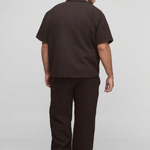 Plus Oversized Jumbo Waffle Revere Shirt and Relaxed Pants Set