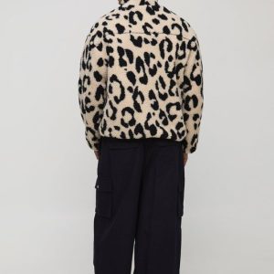Regular Fit Leopard Print Borg Zip Through Funnel Neck Jacket