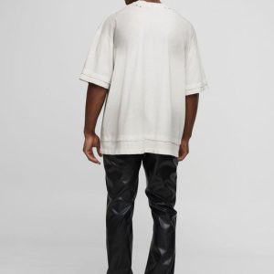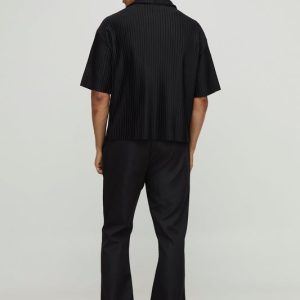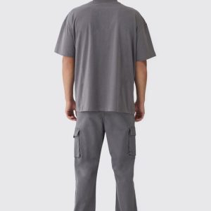 Short Sleeve Drop Shoulder Pu Shirt Jacket & Cargo Pants Set