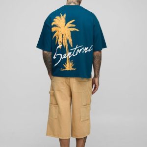 Tall Oversized Extended Neck Renaissance Worldwide Print T-Shirt