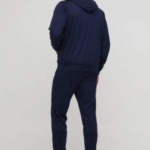 Regular Fit Man Interlock Panelled Hooded Zip Through Tracksuit
