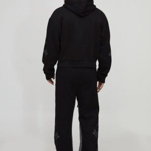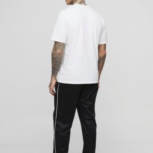 Tall Regular Man Embroidered T-Shirt & Oversized Tricot Extended Drawcord Sweatpants Set