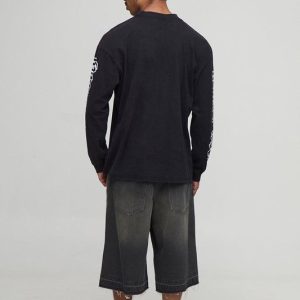 Black Oversized Extended Neck Washed Gothic BM Crest Long Sleeve T-Shirt