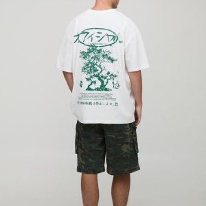 White Oversized Extended Neck Ofcl MAN Eagle Over The Seam Printed T-Shirt