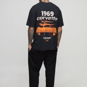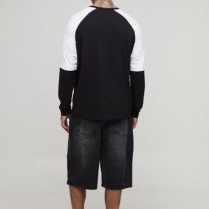 Tall Oversized Boxy Faux Layer Embroidered Graphic Raglan T-Shirt