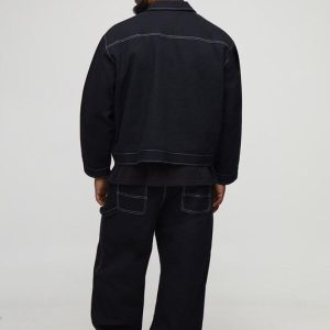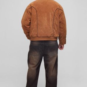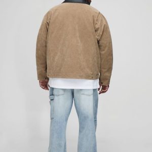 Plus Oversized Boxy Contrast Collar Faux Suede Harrington Jacket