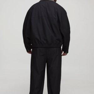 Plus Oversized Boxy Contrast Collar Faux Suede Harrington Jacket