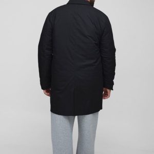 Plus Quilted Padded Longline Regular Fit Mac Jacket In Black