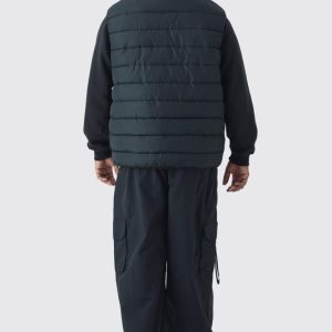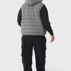 Plus Quilted Zip Through Hooded Regular Fit Vest In Charcoal