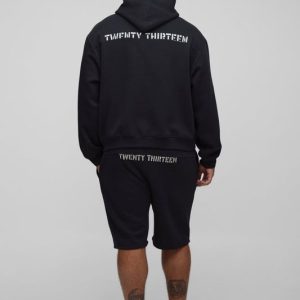 Plus Official Back Embroidered Oversized Boxy Hooded Tracksuit