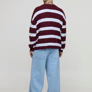 Tall Contrast Edge Open Knit Boxy Oversized Polo Neck Jumper