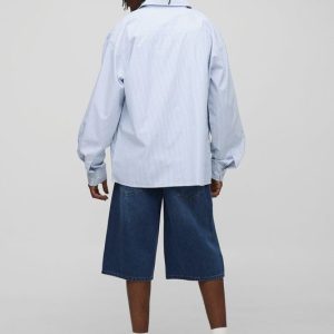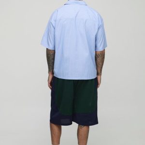 Tall Oversized Stripe Poplin Pocket Front Short Sleeve Shirt
