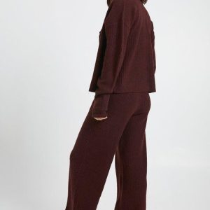 Cosy Knit Crew Neck Cardigan, Knitted Vest and Wide Leg Trouser 3 Piece Co-Ord