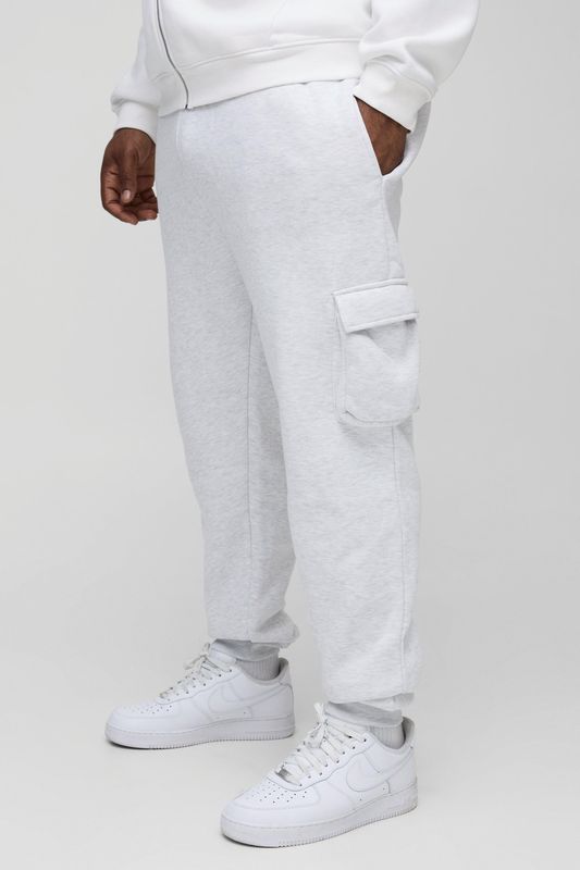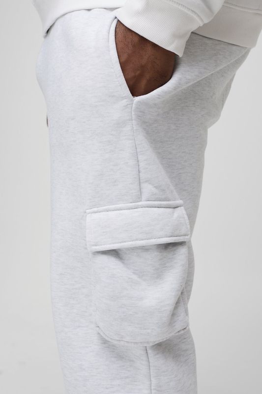 330GSM Plus Skinny Fit Cargo Sweatpants In Grey Marl