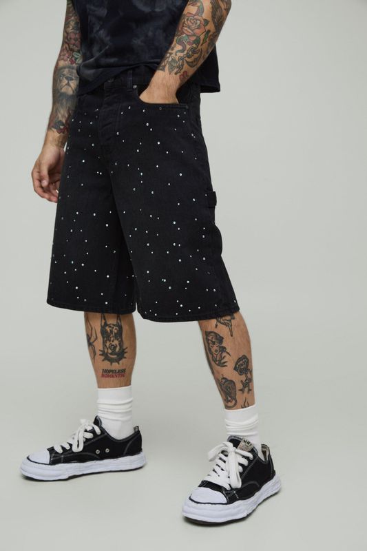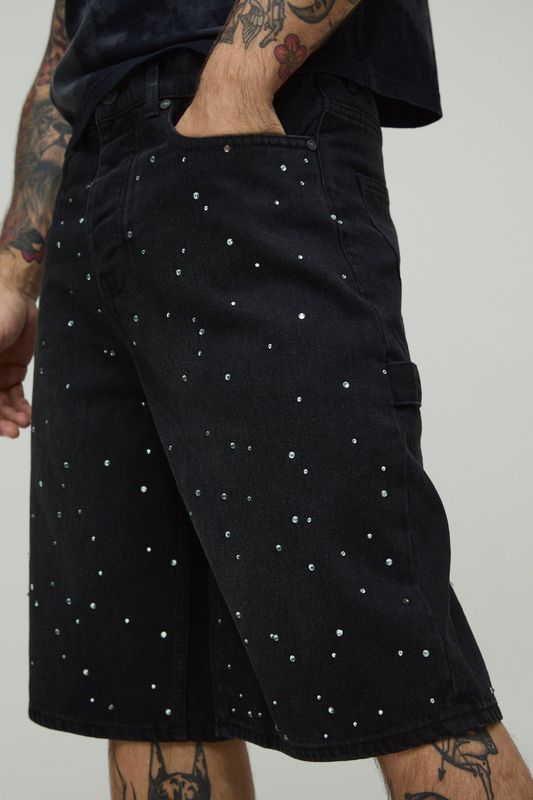 All Over Rhinestone Overdye Jorts