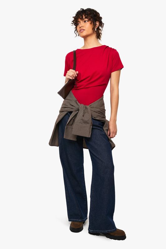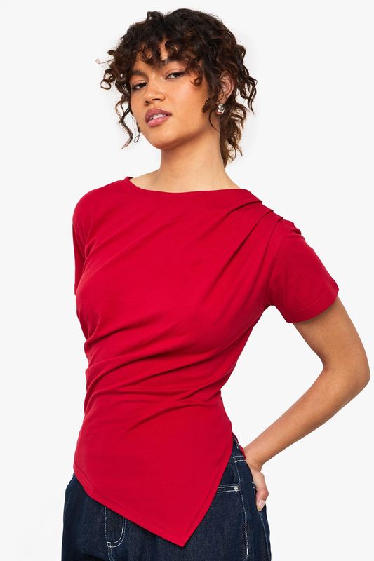 Asymmetric Hem Cinched Waist T-shirt