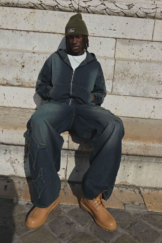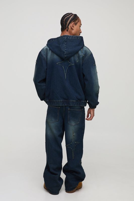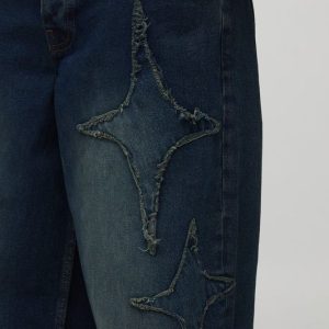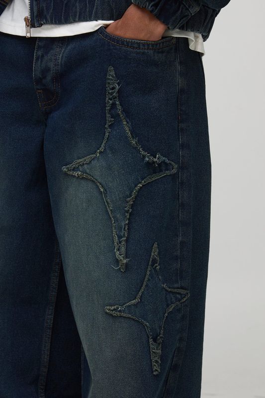 Baggy Fit Star Applique Washed Jeans