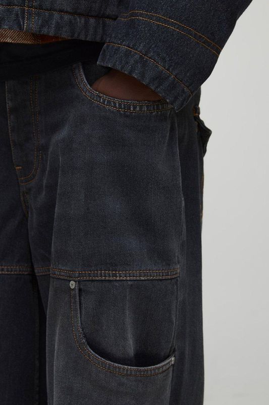 Baggy fit Washed Carpenter Panelled Jeans