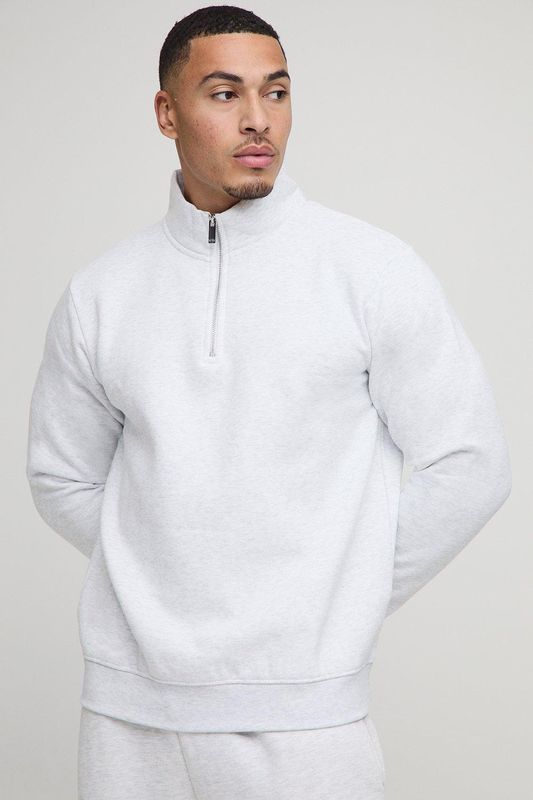 Basic Regular Fit Quarter Zip Funnel Neck Sweatshirt