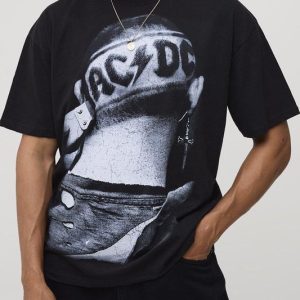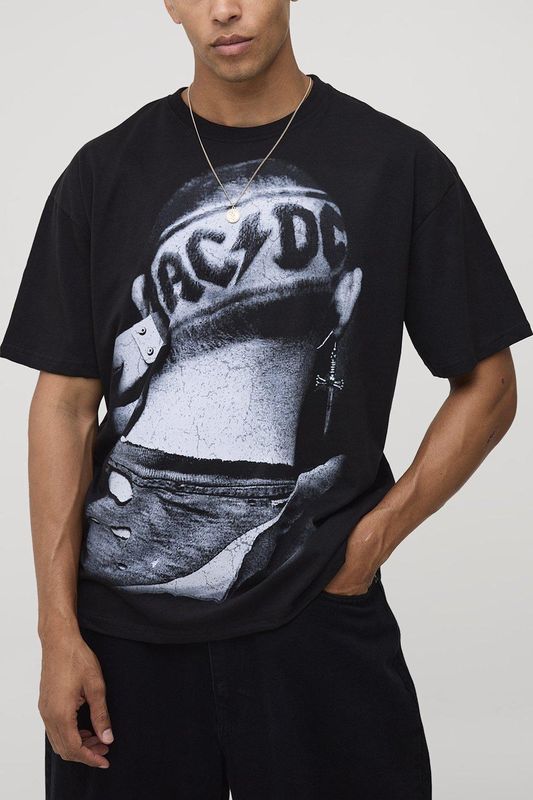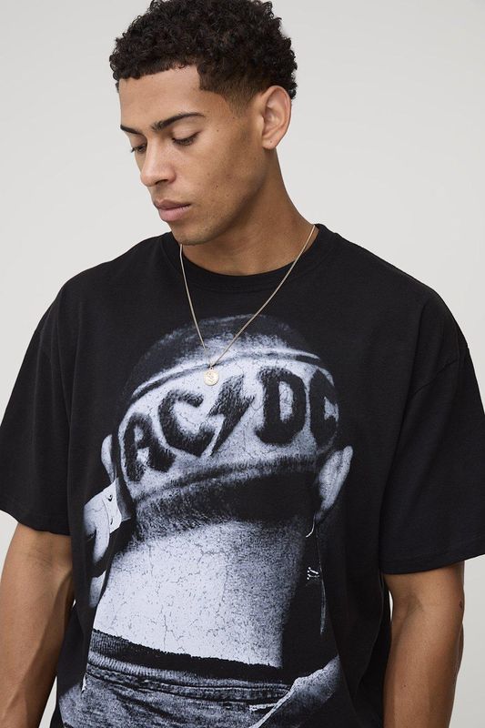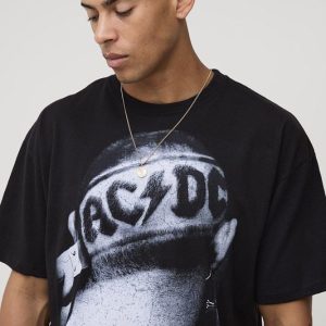 Black Oversized AC/DC License Printed T-Shirt