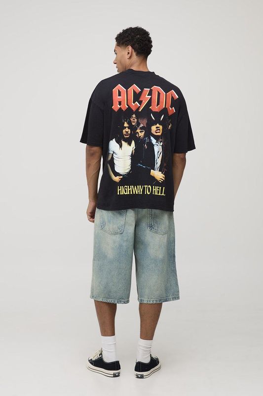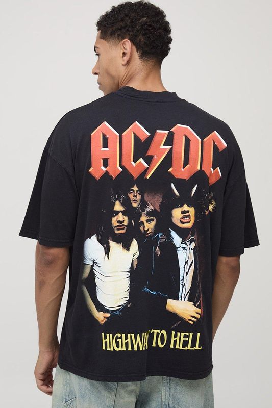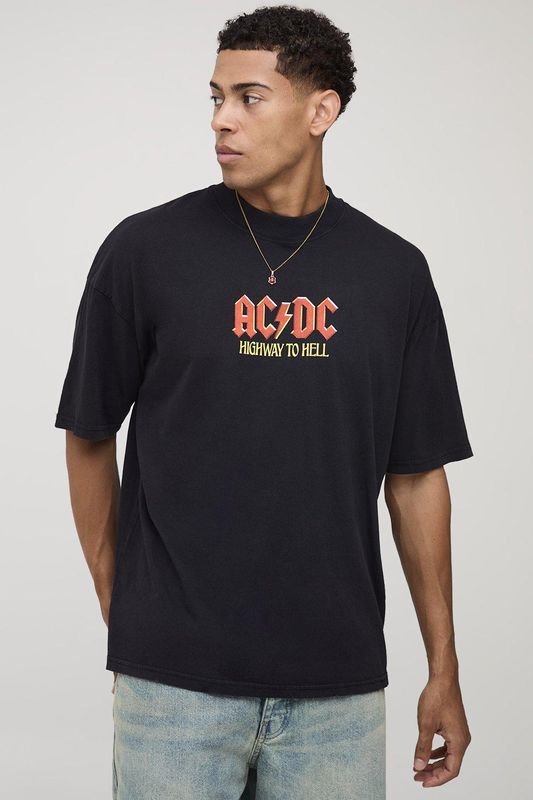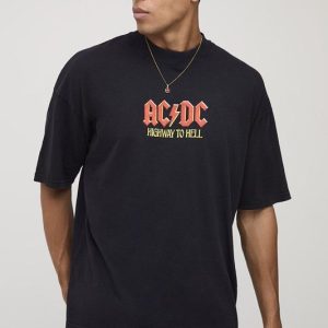 Black Oversized AC/DC License Printed T-Shirt