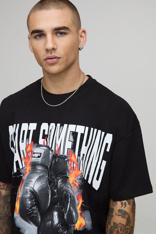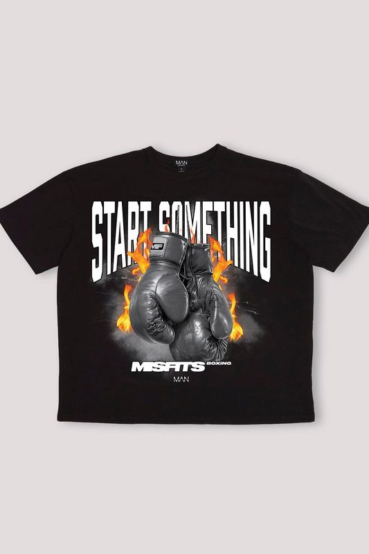 Black Oversized Boxing Gloves Misfits License Printed T-Shirt