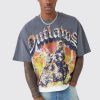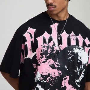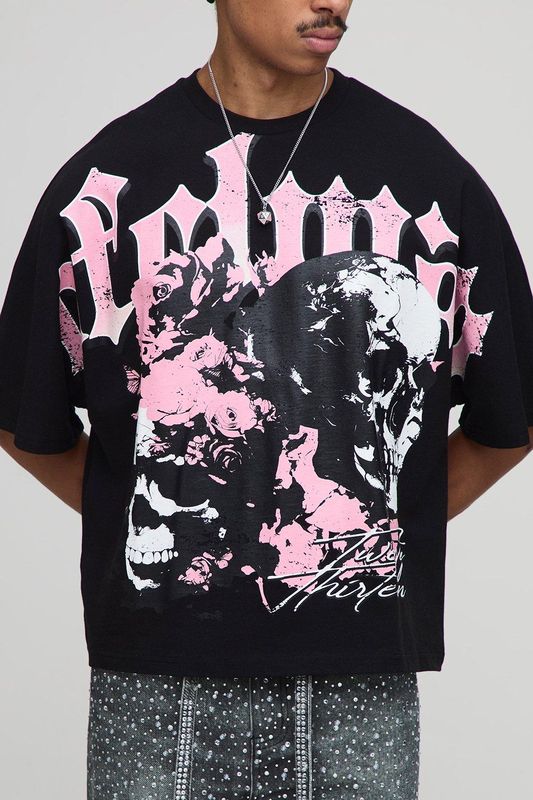 Black Oversized Boxy Heavyweight Skull Print T-Shirt