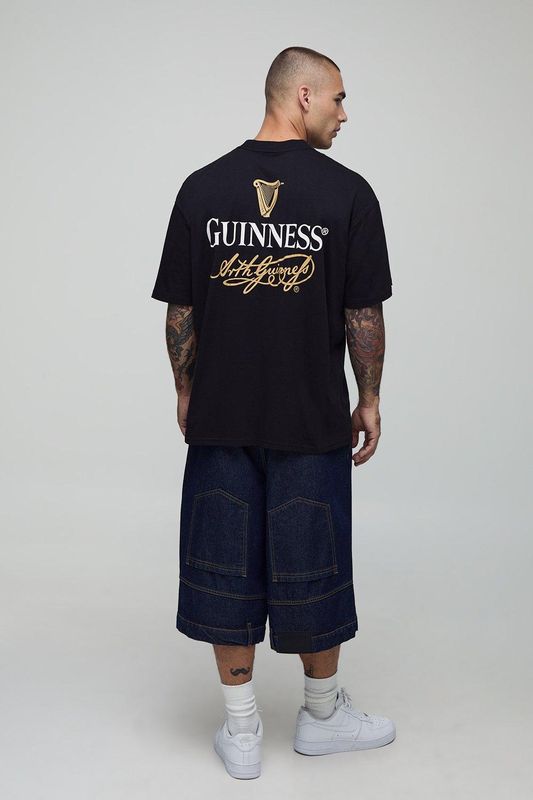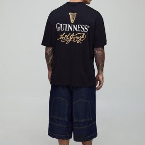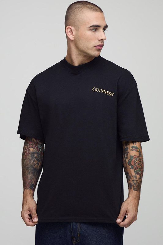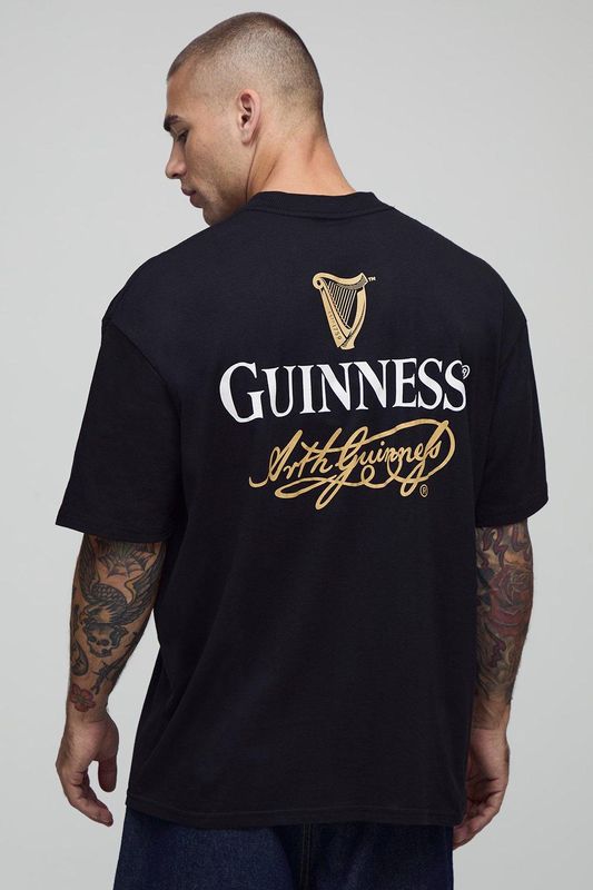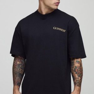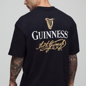 Black Oversized Extended Neck Guinness License Printed T-Shirt