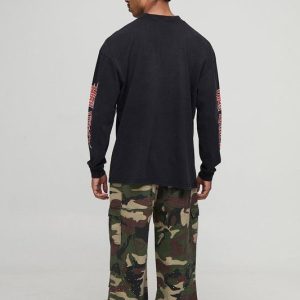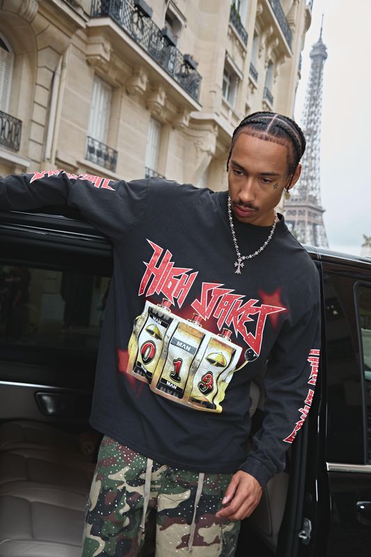 Black Oversized Extended Neck Slot Machine Long Sleeve Printed T-Shirt