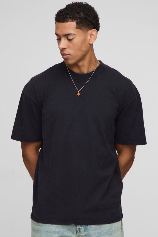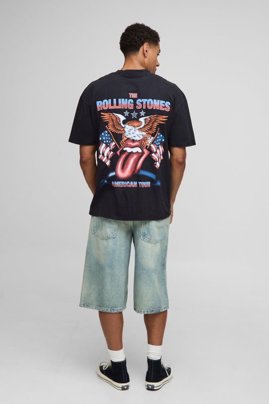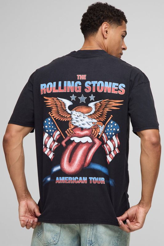 Black Oversized Extended Neck The Rolling Stones Acid Wash License T-shirt