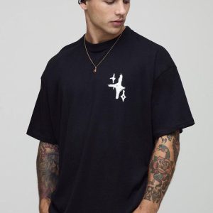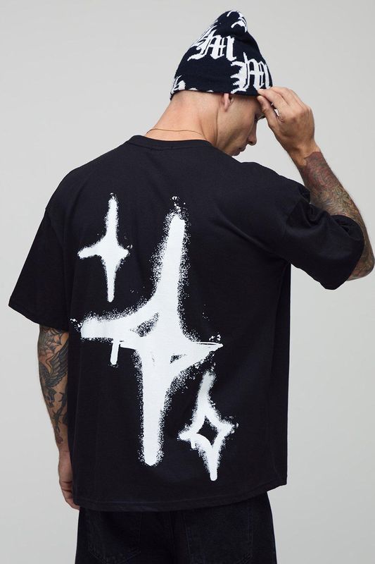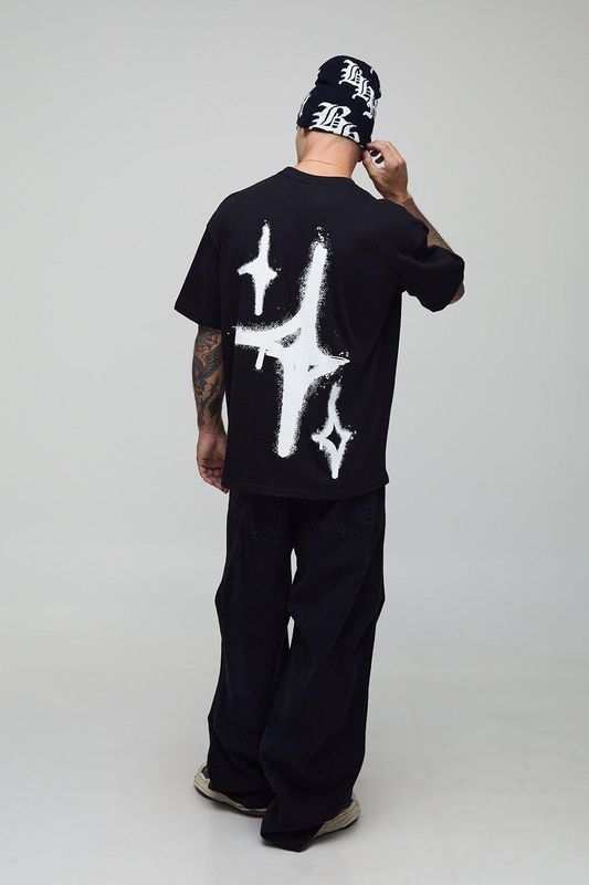 Black Oversized Graffiti Spray Star T-Shirt