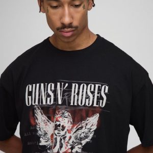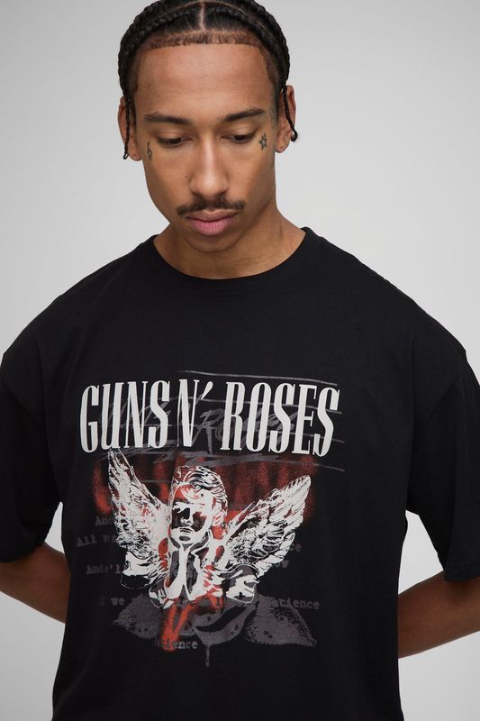 Black Oversized Guns N Roses License Printed T-Shirt