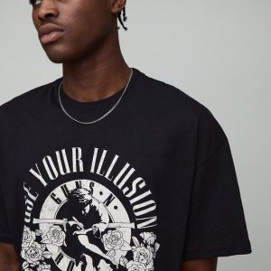Black Oversized Guns N Roses License Printed T-Shirt