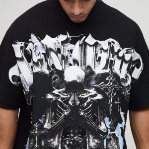 Black Oversized Heavyweight Gothic Print T-Shirt
