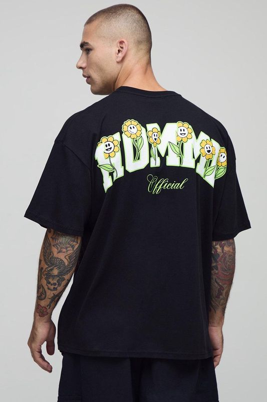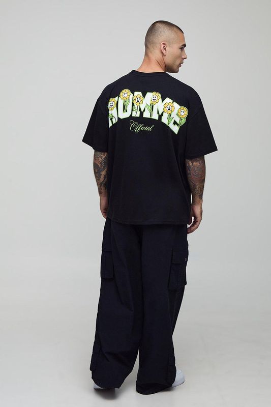 Black Oversized Homme Flower Market T-Shirt