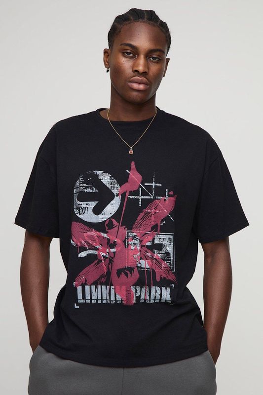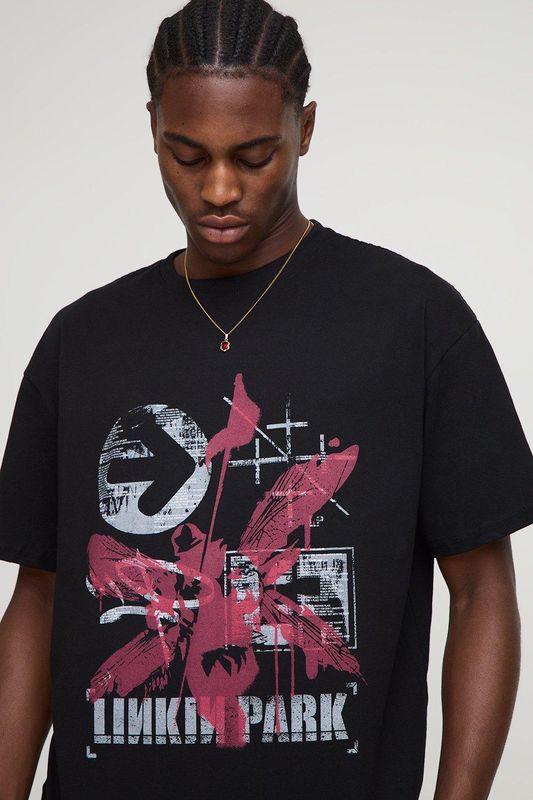 Black Oversized Linkin Park License Printed T-Shirt