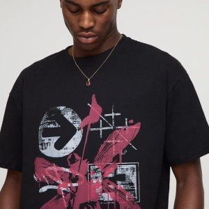 Oversized Extended Neck Over The Seam Gothic Back Print T-shirt