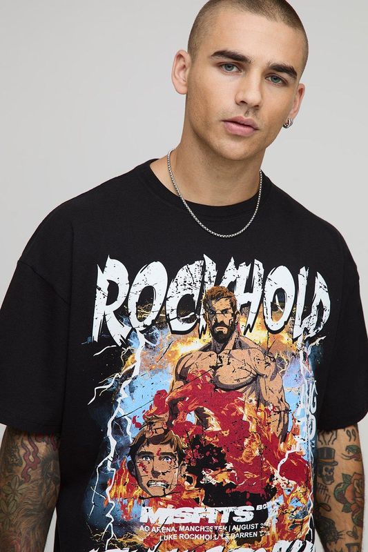 Black Oversized Luke Rockhold Misfits License Printed T-Shirt