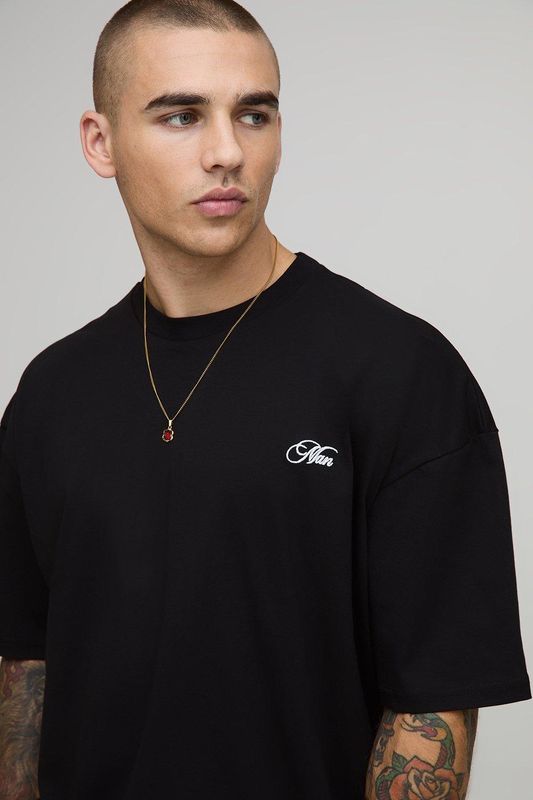 Oversized Extended Neck Over The Seam Gothic Back Print T-shirt