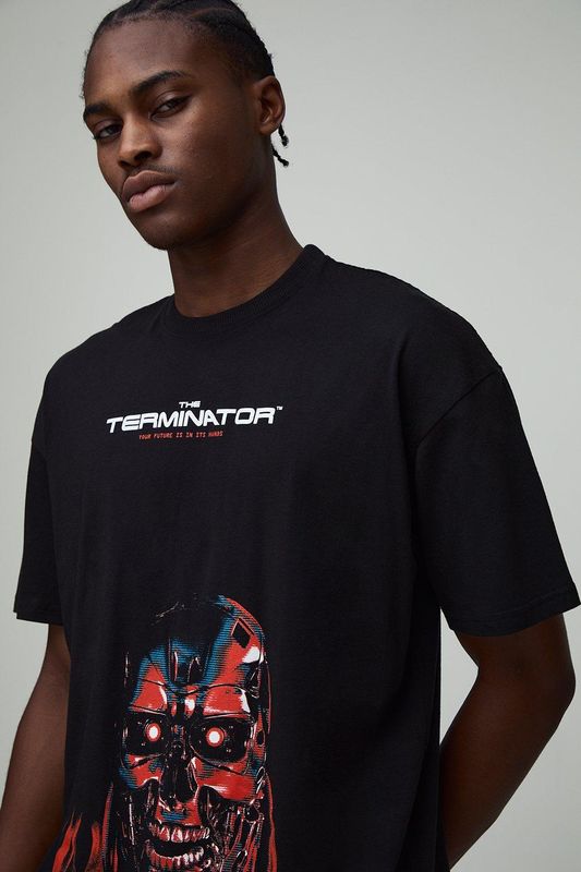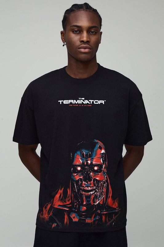 Black Oversized The Terminator License Printed T-Shirt