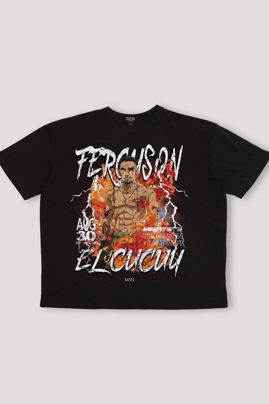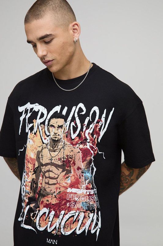 Black Oversized Tony Ferguson Misfits License Printed T-Shirt
