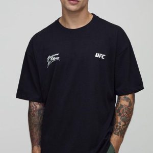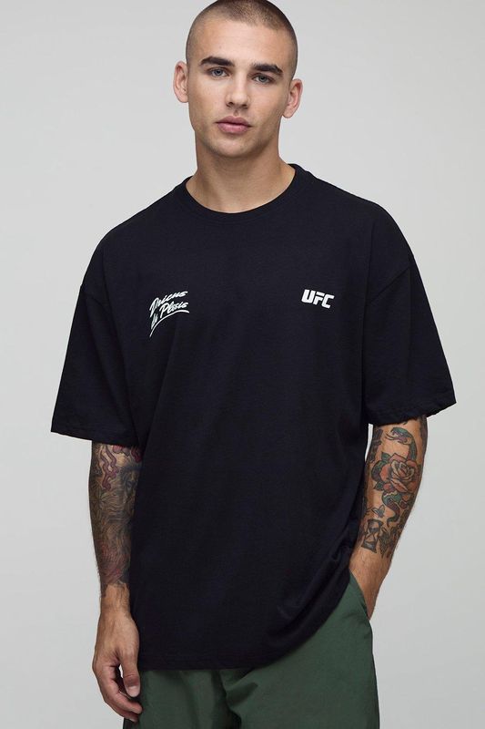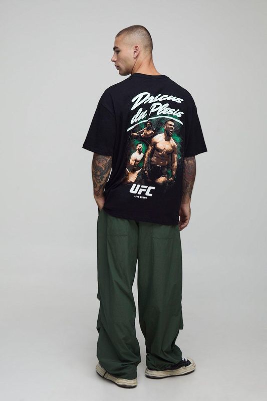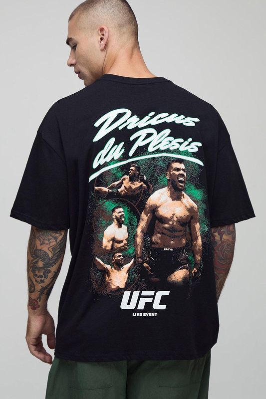 Black Oversized UFC Dricus Du Plessis License Printed T-Shirt