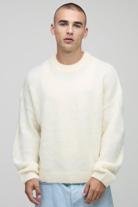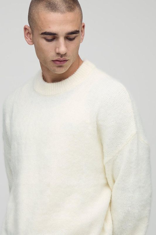 Boxy Fit Brushed Extended Neck Knitted Jumper