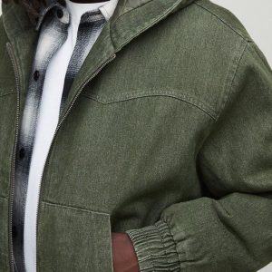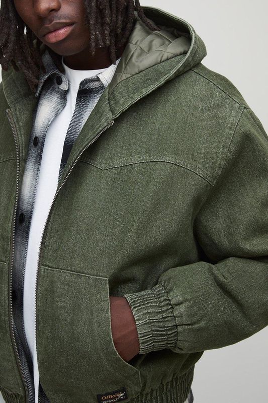 Boxy Fit Denim Quilted Zip Through Hoodie