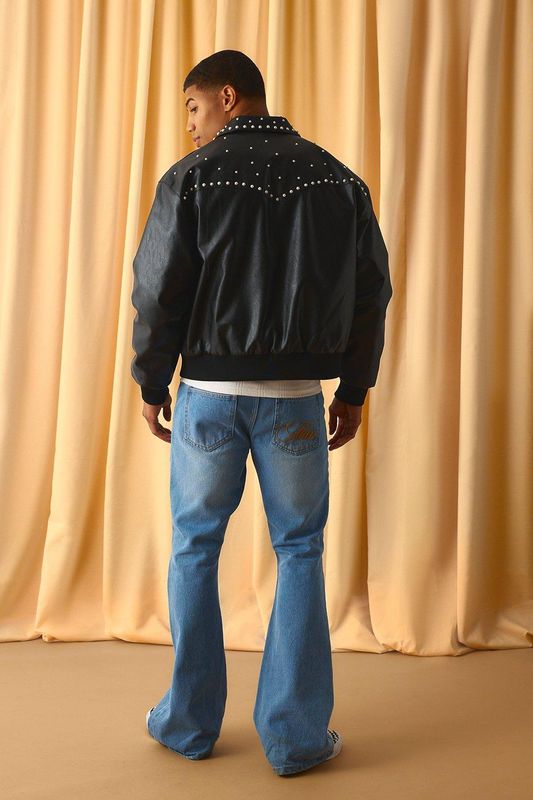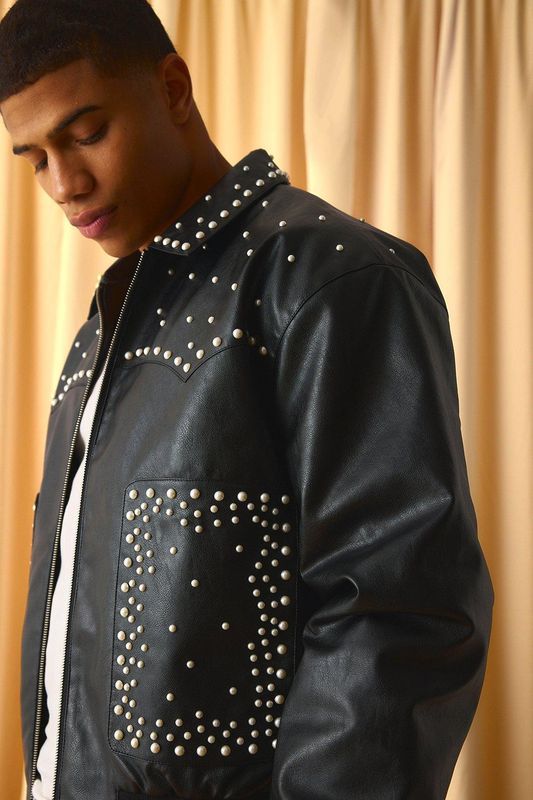 Boxy Fit Embellished PU Western Jacket