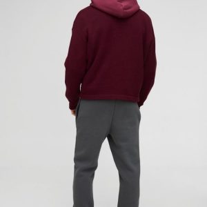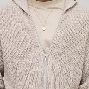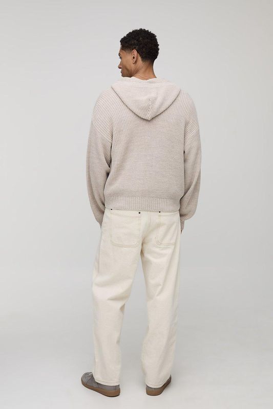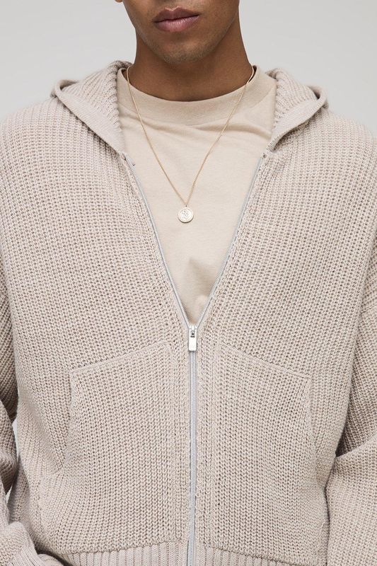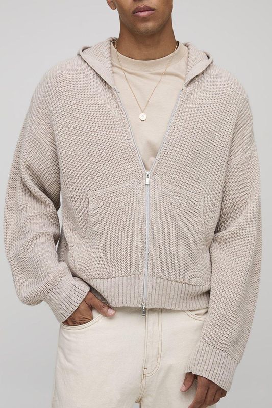 Boxy Fit Ribbed Zip Thru Knitted Hoodie