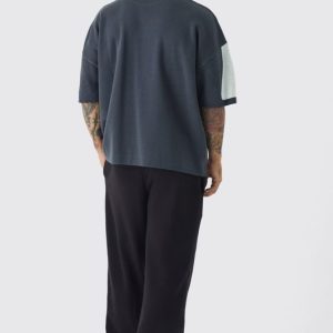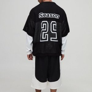 Oversized Faux Sleeve Open Stitch Varsity Hockey Knitted T-Shirt