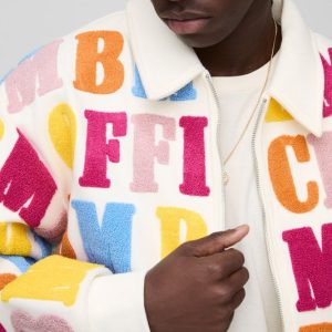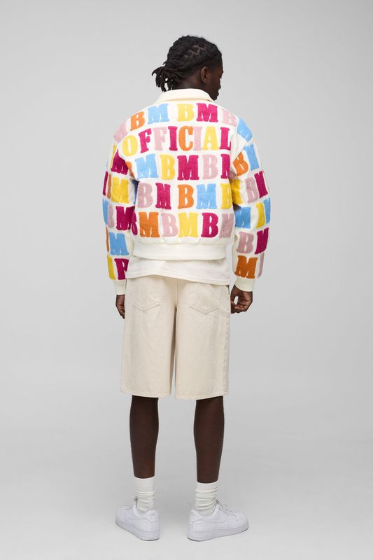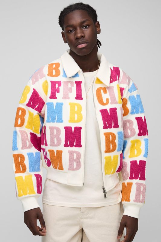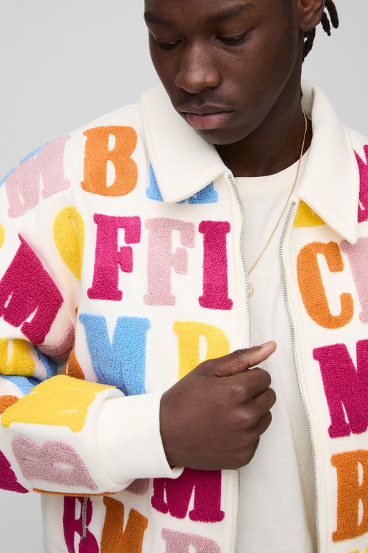 Boxy Letter Badge Collared Varsity Jacket In Ecru